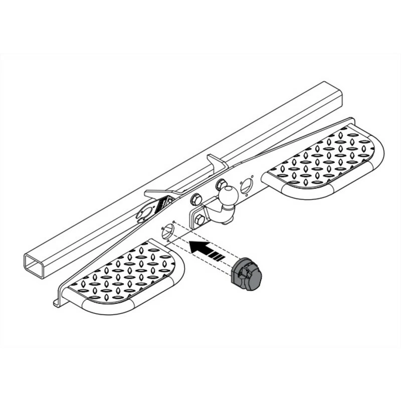 Le marchepied se fixe entre la platine et la rotule d’attelage (voir notice).