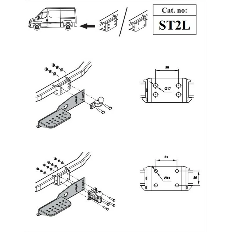 Le marchepied se fixe sur la platine de fixation des attelages à rotule « standard » ou « rotule en D ».
