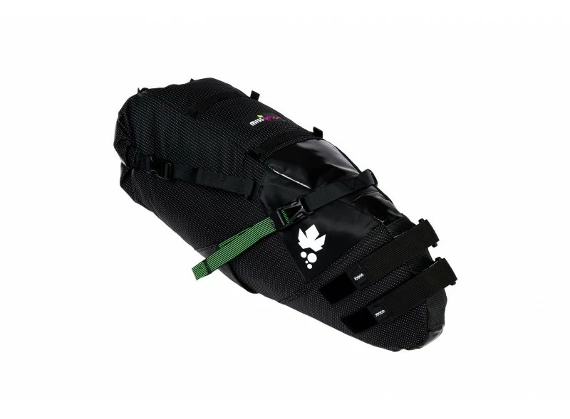 La sacoche est fixée à la tige de selle par 2 straps en Velcor resistants et couverts d’un matérial spécial contre les glissements qui réduit aussi l’abrasion de la tige de selle.