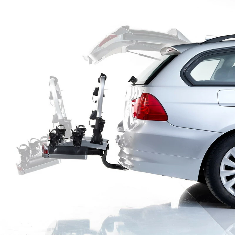 Ses principaux atouts : rabattable, verrouillable, repliable, compatible pour 2 vélos électriques, compatible avec les rotules Brink RMC pin.