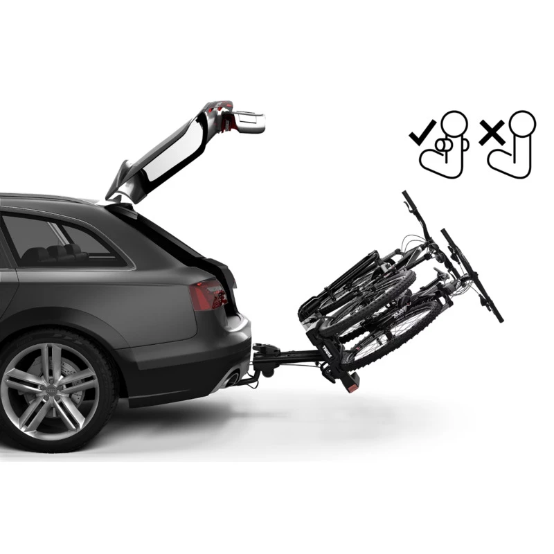 Le Thule EasyFold XT F peut transporter 2 vélos d’une charge totale de 60 kg, ce qui le rend compatible avec le transport de vélos électriques et de Fatbikes !