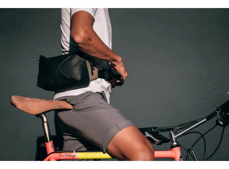 voila enfin la sacoche de cintre qu’on attendait : une sacoche pratique sur le vélo mais qu’on peut facilement détacher du vélo et emporter avec soi !