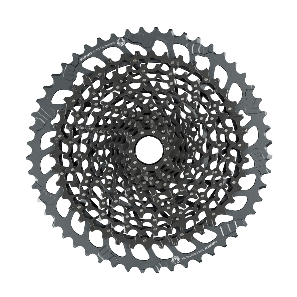The new 10-52 Eagle cassette for riders who prioritize all day function over anything else. With an expanded, 520-percent gear range giving riders more ability to spin and recover on the burliest climbs. Featuring FULL PIN™ technology that uses lightweight, precision engineered steel cogs permanently connected with high-strength stainless steel pins. An open design similar to our X-DOME™ cassette that aids in mud clearance, giving riders crisp shifting performance and longer component life.