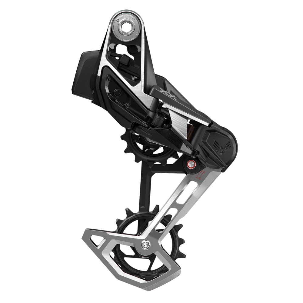 The XX Eagle Transmission derailleur foundationally changes the relationship between cassette and derailleur. Engineered as integrated, interdependent transmission components, the T-Type derailleur mounts around the wheel axle itself, contacting the cassette directly with a first-of-its-kind Hangerless Interface. Its game-changing Full Mount attachment method creates a far stronger connection and grips both sides of the frame. The new transmission derailleurs feature the same intuitive pairing and set-up procedure as our Eagle AXS derailleurs. A tucked-in profile houses replaceable skid plates that enhances dependability in high-pressure racing environments. To further its performance, the lower pulley called Magic Wheel keeps spinning if an object becomes lodged. Additionally, the XX Eagle Transmission derailleur features an overload clutch, accommodates common maintenance and features that real world riders really appreciate. This is unrivaled shifting performance, unprecedented strength. The XX Eagle Transmission derailleur delivers.